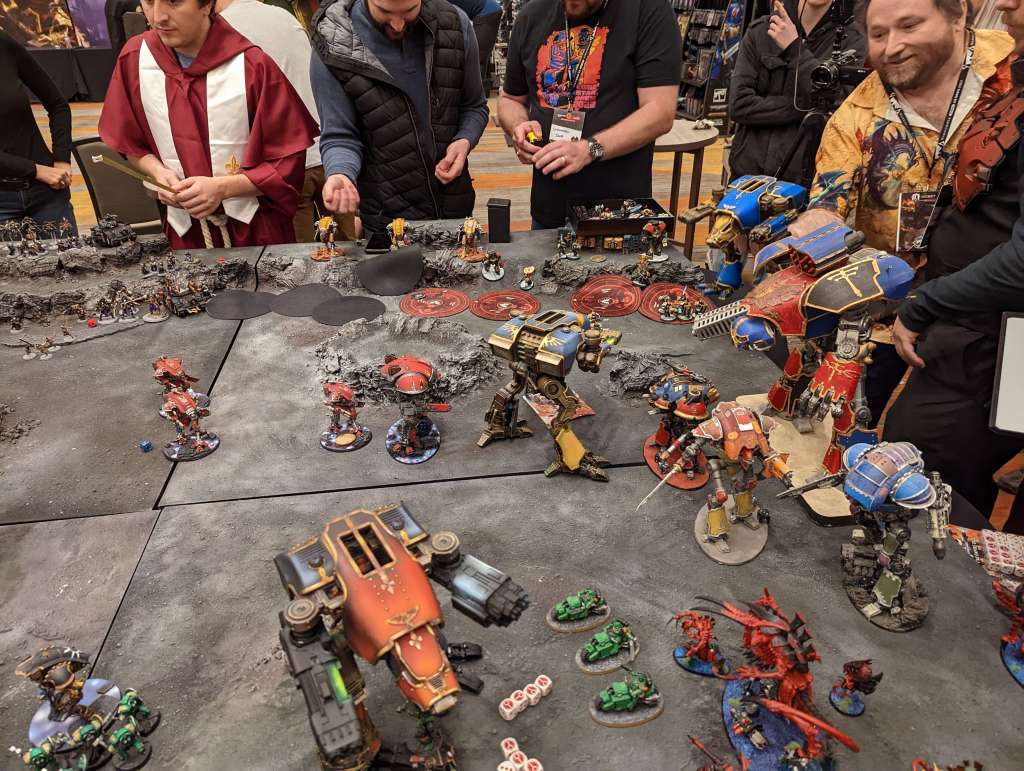 Those both tie into the other ideas that fellow gamers got excited about, which was leading some of the games off with desperate last stands against numerically superior foes, with a player just holding out as long as they can against multiple opponents. What also came up was multi-faction battles with three or more competing players on the same table. They had a big reveal on the last day where key players were invited for an apocalypse-style showdown with several titans, it would have been nice for all the players to have some similarly big battle. Those thoughts are all ways to add a bit more spice to the overall gaming experience.