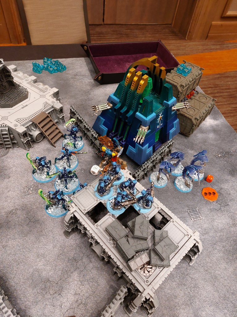 Games three and four happened on day two. In the morning, I fought against Necrons. My opponent had some issues and we didn’t get started until almost an hour and a half into the game. I found it a bit frustrating, to be honest, especially as my opponent seemed hyper-focused on winning the game versus playing and having fun. We only got through about full game turns, which I found disappointing.