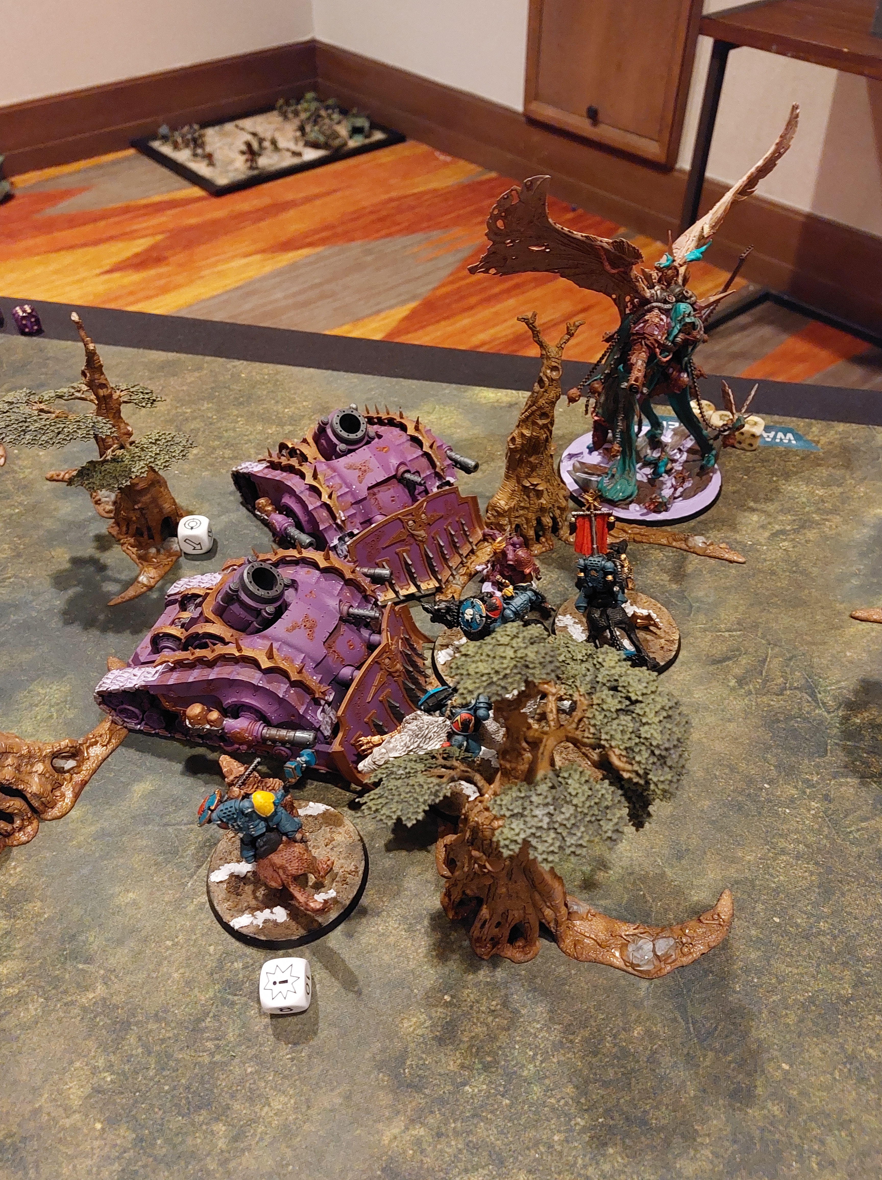 Overall, I was pretty happy with how I played, with 3 victories and 2 losses. The one loss, to Necrons, I think would have been a draw at worse if we had been able to play it all the way out. The loss to the Death Guard was in a game that was so back and forth that I can’t complain about it. I took a combat-focused themed army, with no psychic abilities, pretty much no shooting, into the teeth of two very nasty shooty armies and three equally shredding melee armies. Most importantly, I had a lot of fun and most of my opponents seemed to as well. There wasn’t any of the movement shenanigans or the “trade this unit for that” that I’ve seen with a lot of the competitive play at tournaments. Most of my opponents were there to have fun, to play out themed battles, and to get into the event.