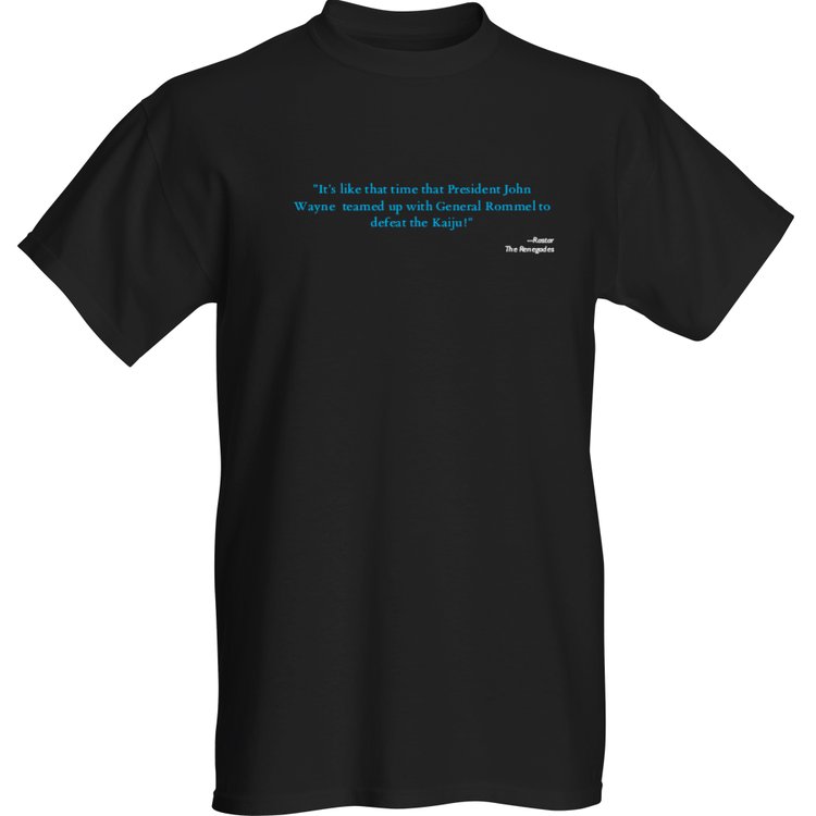 Rastar’s knowledge of history is on display with this astute quote. “It’s like that time President John Wayne teamed up with General Rommel to defeat the Kaiju!” Please specify size when ordering
