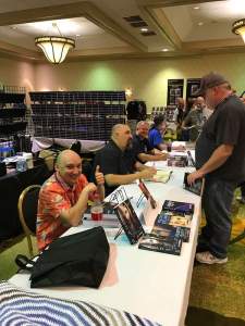 Sunday I had my last signing session and then another panel in the Four Horsemen Universe. I got to announce my upcoming book with them, The Colchis Job. Which, I am happy to say, I sent in as a final draft to Chris Kennedy right after I got back from Liberty Con. Also on the panel was Chris Woods, whose book Legendary is fantastic and he’s working on he sequel.